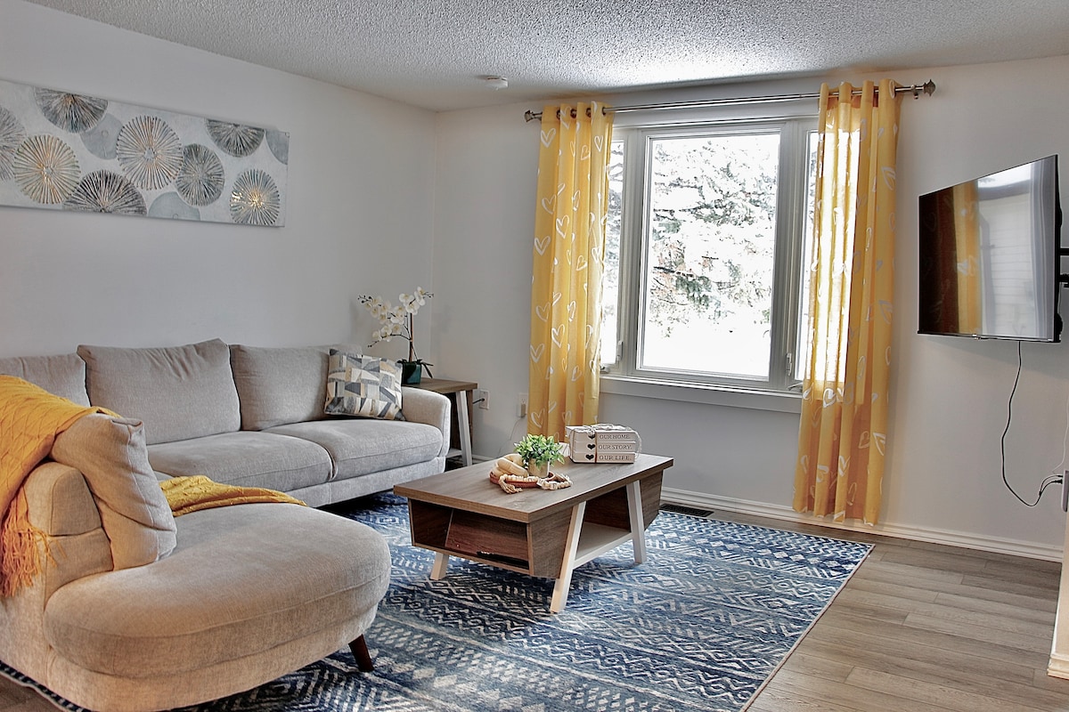 En este alojamiento se respira tranquilidad: ¡relájate con toda la familia! Siéntete como en casa lejos de casa. Cómodo bungalow totalmente terminado. Situado en el extremo norte de Barrie. A poca distancia a pie del centro comercial cerrado «Georgian Mall», que ofrece más de 150 tiendas para explorar. Las comodidades de la casa incluyen: 4 dormitorios con camas tamaño queen, 3 baños completos, ropa de cama, toallas y artículos de tocador (champú/acondicionador/gel de baño) y lavandería, todo disponible para tu comodidad. Cada piso tiene TV para que te sientas más cómodo.