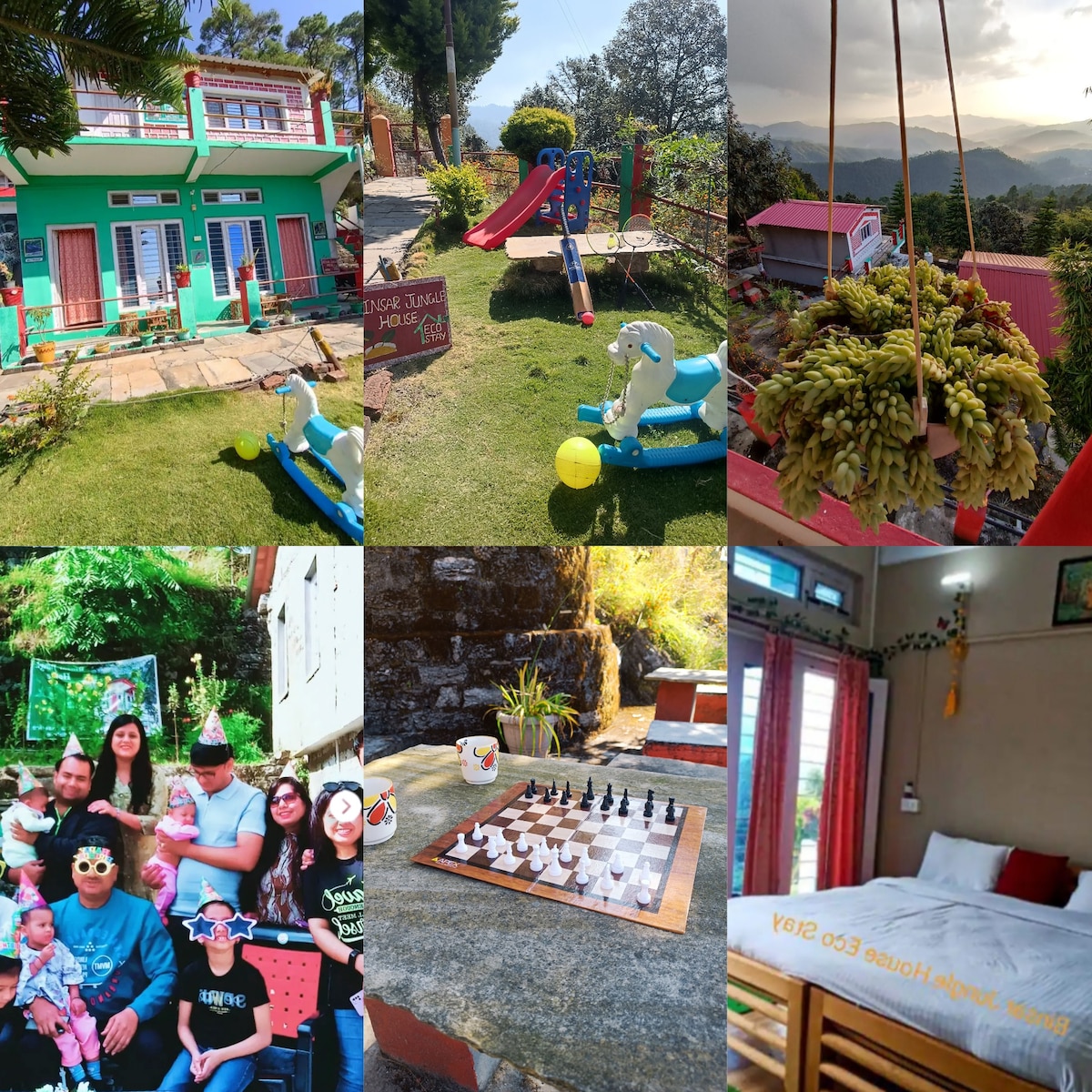 Despiértate con el relajante canto de los pájaros, maravíllate con las noches estrelladas y disfruta de las impresionantes vistas del Himalaya desde tu habitación y balcón privado. Belleza de temporada: Verano: amaneceres espectaculares, aire fresco, picos nevados. Monzón: inversiones de nubes, vegetación, flores de temporada. Invierno: nieve, cielo estrellado, fogatas, picos nevados. Participa en la vida rural: Agricultura práctica. Aprende a hacer pahadi Namak o bhaang ki chatni. Actividades para amantes de la naturaleza: Senderismo Observación de aves
