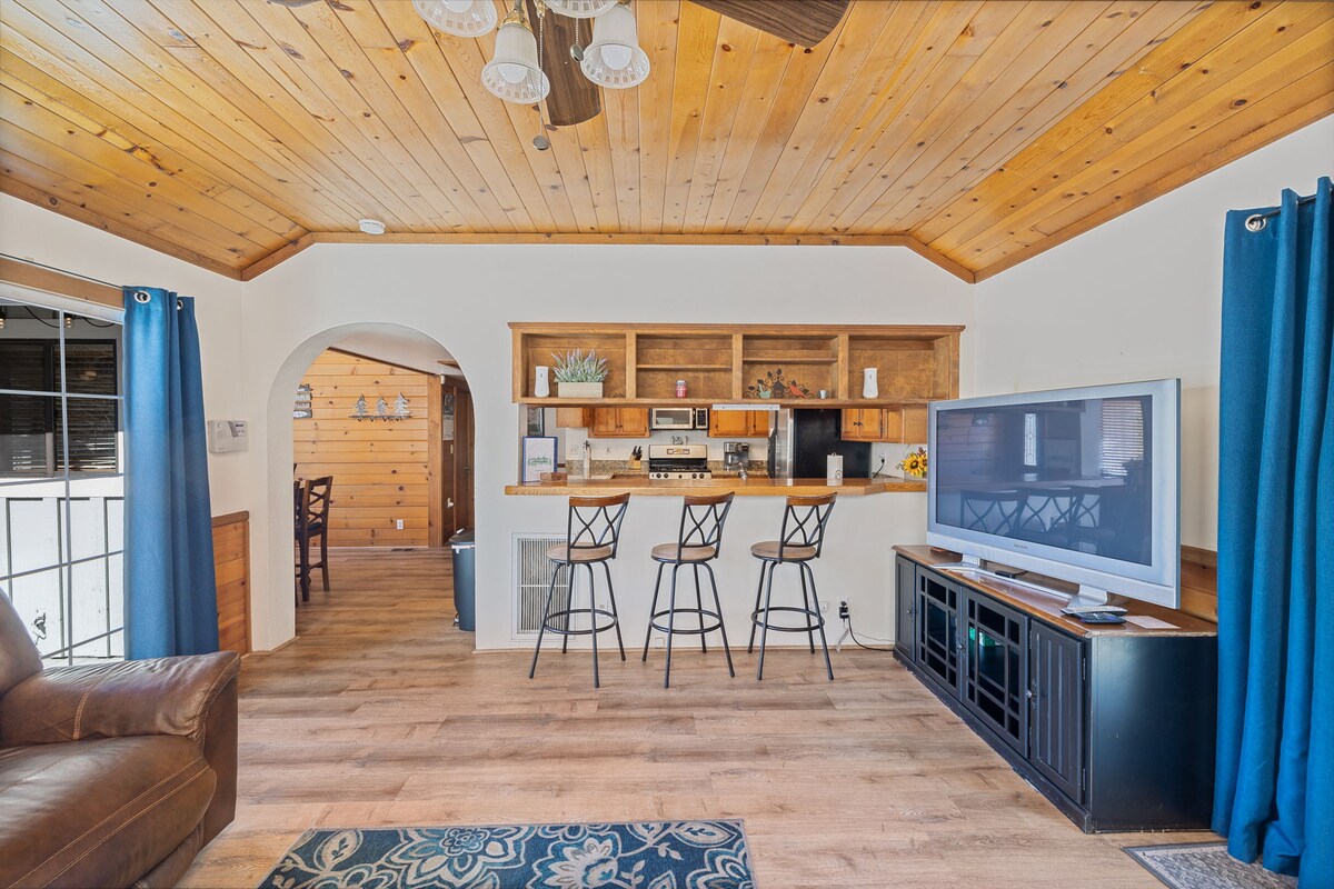 Increíble escapada a la cabaña a solo una cuadra de Bass Lake y a minutos de Yosemite. Nuestra cabaña familiar totalmente surtida y apta para mascotas ofrece WiFi, aire acondicionado, cuatro televisores inteligentes de pantalla plana, Bluetooth y una increíble terraza perfecta para relajarse. Disfruta de un corto paseo hasta The Pines Resort, alquiler de barcos y actividades durante todo el año, como senderismo, ciclismo, deportes acuáticos, juegos de nieve y alquiler de vehículos todo terreno. La acogedora decoración de la cabaña y el fácil acceso al lago hacen de este el escape de montaña perfecto para familias y fines de semana.