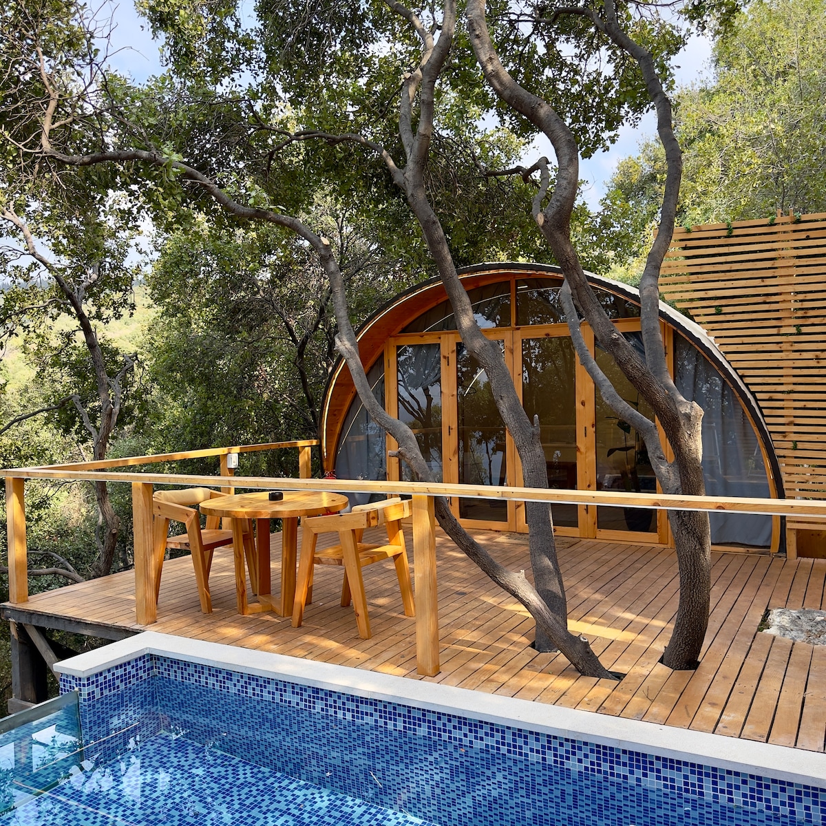 A unique retreat with breathtaking sunsets in the middle of the trees. The property features 3 domes side by side, each with its own private entrance, ensuring total privacy. Dive into the history of this unique and memorable place with an amazing sunset view in the middle of the trees and calm