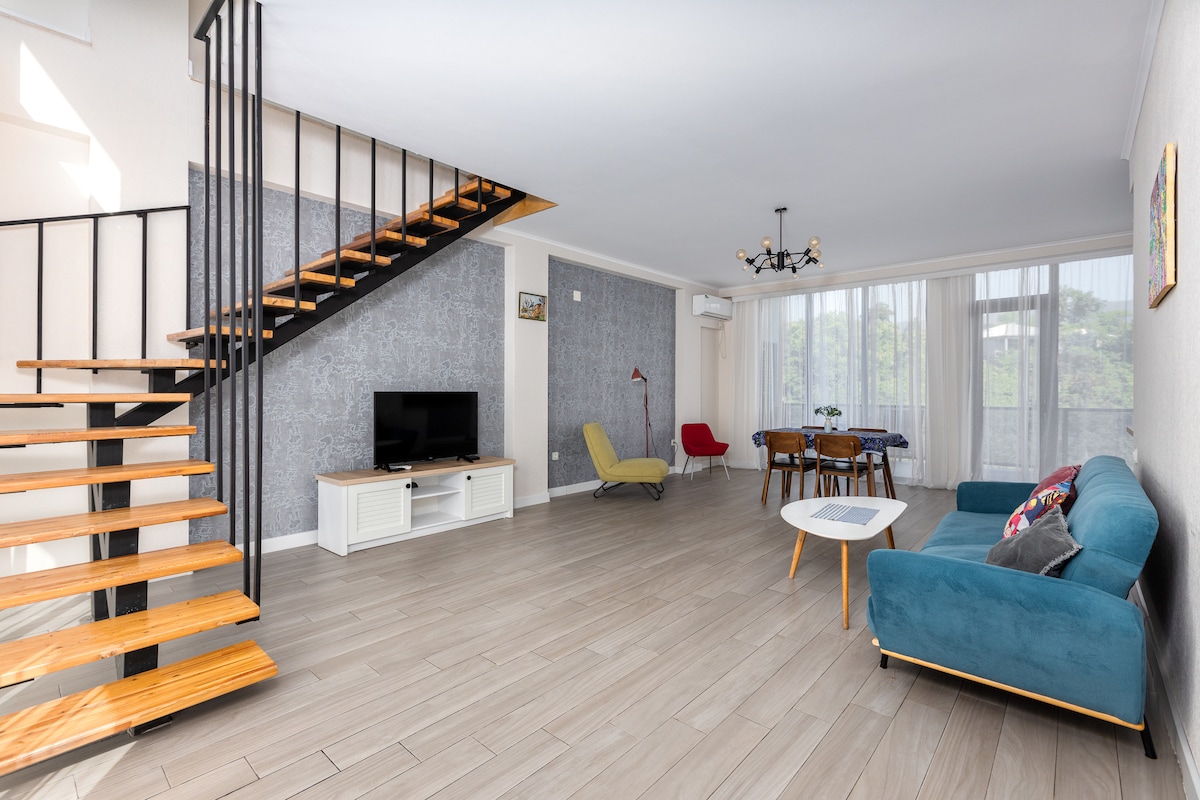 Experience a getaway at Gantiadi Holiday House, a newly built residence near the city center. The property has four independent houses with private entrances and shared pool and yard. Every room has a private balcony for a peaceful retreat Now available for long-term stays! Ideal for digital nomads, with high-speed internet and a dedicated workspace for a comfortable and productive stay.
