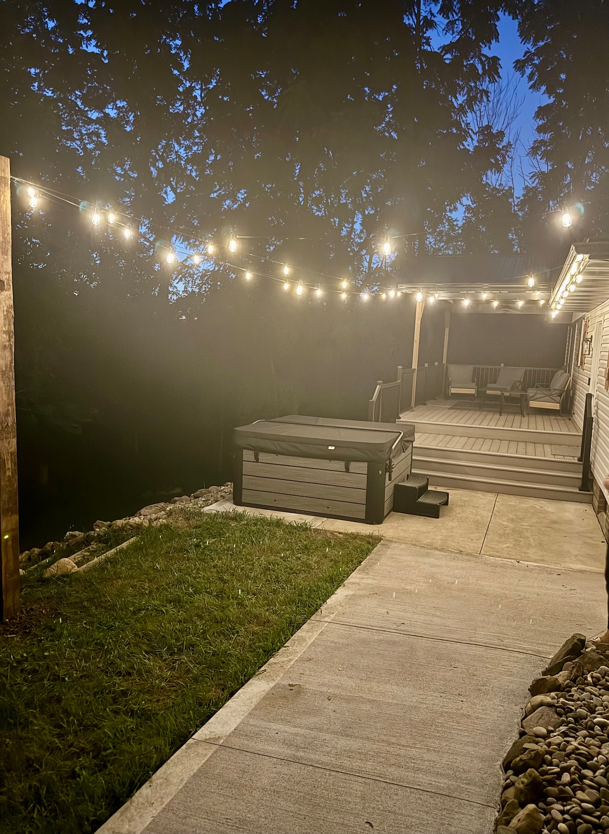 Bienvenido a tu tranquilo oasis rural, a solo 15 minutos en coche de las atracciones turísticas locales, así como a 1/2 milla de las cataratas de Dundee. Esta casa de cuatro dormitorios y dos baños, con capacidad para 8-10 personas, es la opción perfecta para una escapada inolvidable. Ubicada a lo largo de una fila de pinos, esta moderna granja única con detalles de madera hace que esta casa se destaque entre el resto. Después de un día de compras lleno de diversión, le encantará darse un baño en la bañera de hidromasaje bajo las estrellas en su porche trasero privado.