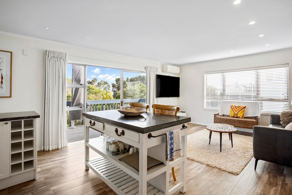 Vistas espectaculares, privacidad y comodidad garantizadas en este apartamento de estilo moderno en la isla Waiheke con vistas a la bahía de Hekerua. Situado en el codiciado lado norte de la isla frente a la playa y a solo veinte minutos a pie del pueblo de Oneroa. Este apartamento ocupa todo el nivel inferior de la casa principal. Las habitaciones dan a una gran terraza privada para relajarse al estilo Waiheke. Los huéspedes tienen su propia entrada a través de las escaleras que bajan por el lateral de la casa. Ubicado en la ruta del autobús (autobús 502).