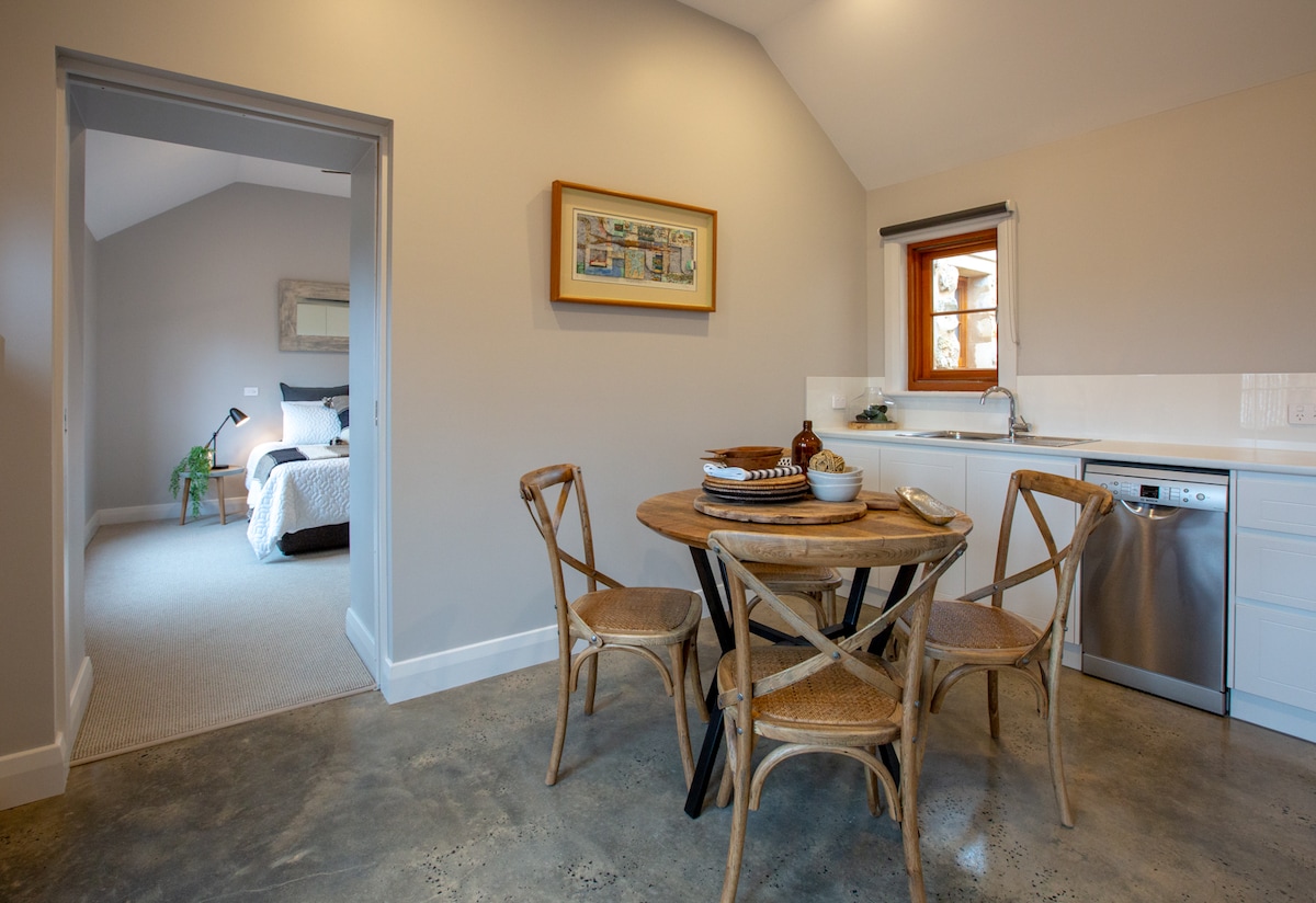 Enjoy this beautiful light filled, open plan peaceful space with raked ceilings This stylish, self-contained one bedroom apartment is set entirely on one level, with plenty of thoughtful touches to make you feel right at home the moment you arrive *ENJOY A NEWLY CREATED REAR COURTYARD SPACE ADDED DECEMBER 2025 Full kitchen, tea, coffee and basic pantry provisions supplied Washer dryer Unlimited NBN access Keyless no step entry accessible throughout with walk in/roll in shower Off street parking