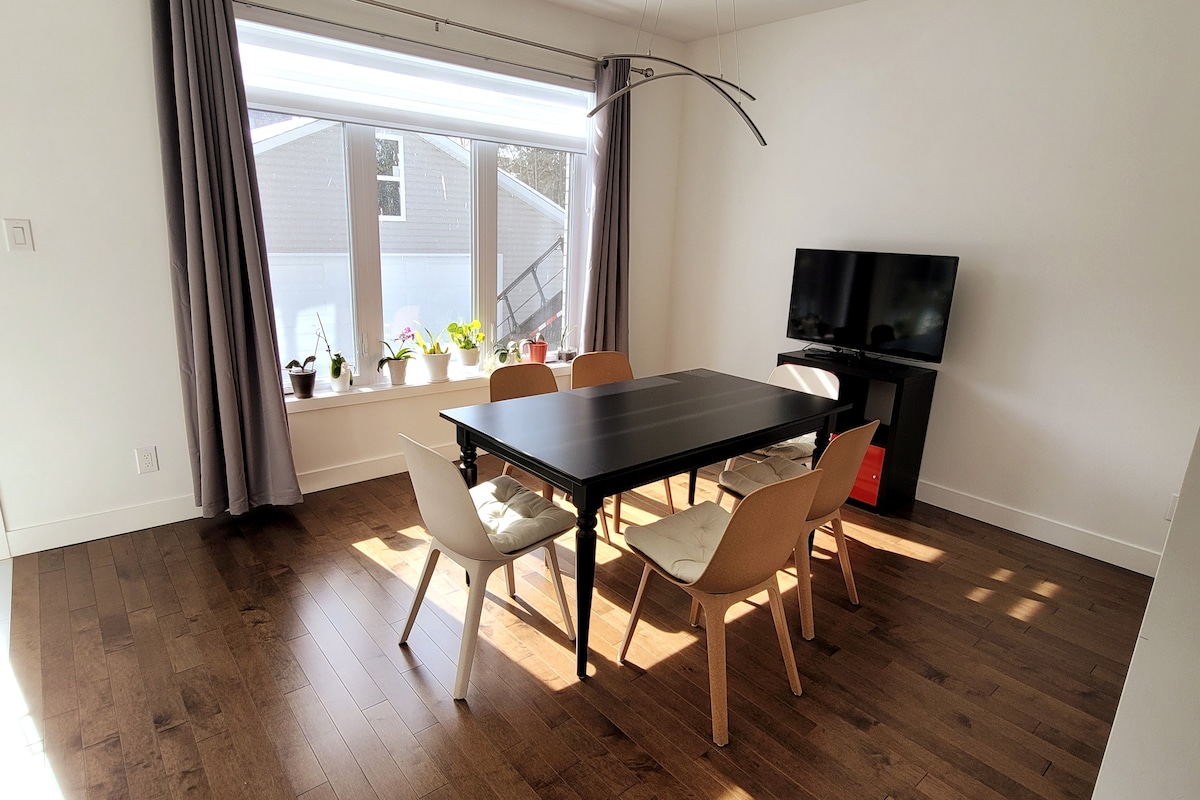 - Sótano espacioso (no incluye una sala de estudio; garaje) - Fácil registro de entrada con teclado (entrada privada de dos niveles y para huéspedes) -2 Estacionamiento gratuito para sedán/SUV o 1 camioneta - Máx. 5: cama queen tamaño master/2, litera/2, sofá cama/1 - Nueva renovación completa y cocina americana/utensilios completos -1 juego de cama cómodo tamaño queen + 3 juegos de cama + 5 mantas - A 2 minutos del tren/autobús de Pine Beach - 15-25 minutos al centro de la ciudad - De 10:00 a. m. a 3:00 p. m. Ruido de la lavandería en el piso de arriba - No se permite la carga de vehículos eléctricos/bicicletas/esquíes en el interior/animales (por alergias) - Carga de vehículos eléctricos: Surrey Park (4 minutos en auto). Silencio después de las 11:00 p. m. AC: junio – 1 de septiembre