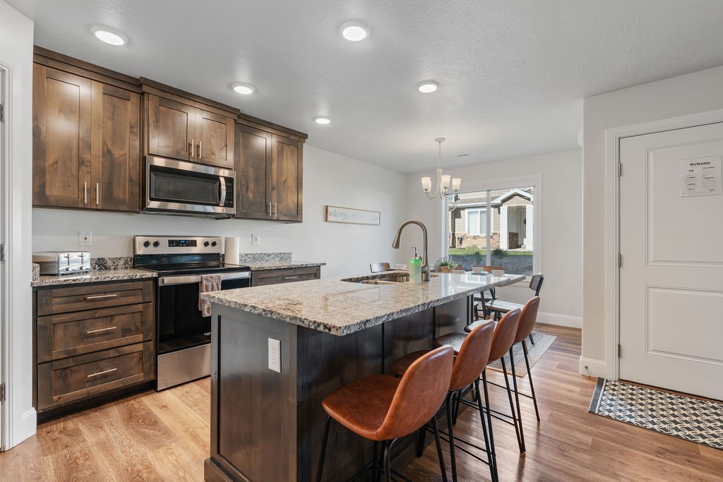 ¡Llama a esta impresionante villa tu hogar para tu próxima estancia en Bear Lake, también conocido como el 'Caribe de las Montañas Rocosas'! «White Beaches at Bear Lake» es un alquiler vacacional de Fish Haven de 8 dormitorios y 6,5 baños que es perfecto para una escapada con un gran grupo de amigos y familiares. ¡Saborea una taza de café caliente en la terraza por la mañana y, más tarde, rema todo el día en uno de los kayaks proporcionados! Para la cena, hay un amplio comedor para que todo el equipo disfrute de un plato casero recién hecho.