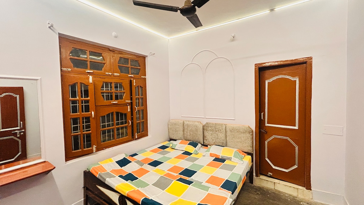Welcome to Evolve Dharamkot - This room is clean and comes with all essential amenities. Its located on the ground floor of a charming, secluded yet social guest house in Dharamkot. A close walk to all the major parts yet quietly tucked away in the Conifer Forests. Wake up in the fresh environment with birdsongs all day. #Dharamkot cafes - 750m #Dalai Lama Temple - 2.4Km #Mcleodganj sqaure - 1.5km #Bhagsunag - 700m #Tushita Meditation center - 500m #Dharamsala Bus Station - 5.7km