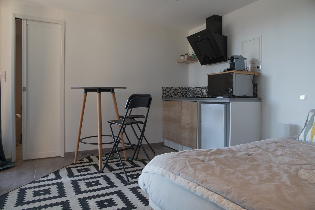 La loge est un appartement penthouse, rooftop aux prestations haut de gamme. Vous pourrez profiter de 60m2 pour 3 personnes maximum (le troisième couchage est un appoint, canapé lit 1 personne de chez Maison du Monde). La loge est la parfaite alliance du confort et de la tradition: charpente apparente, climatisation, fibre optique et bouquet de chaînes TV, cuisine entièrement équipée, décoration choisie, exposition d’œuvres d’art, terrasse, balcon, parking privé en supplément.