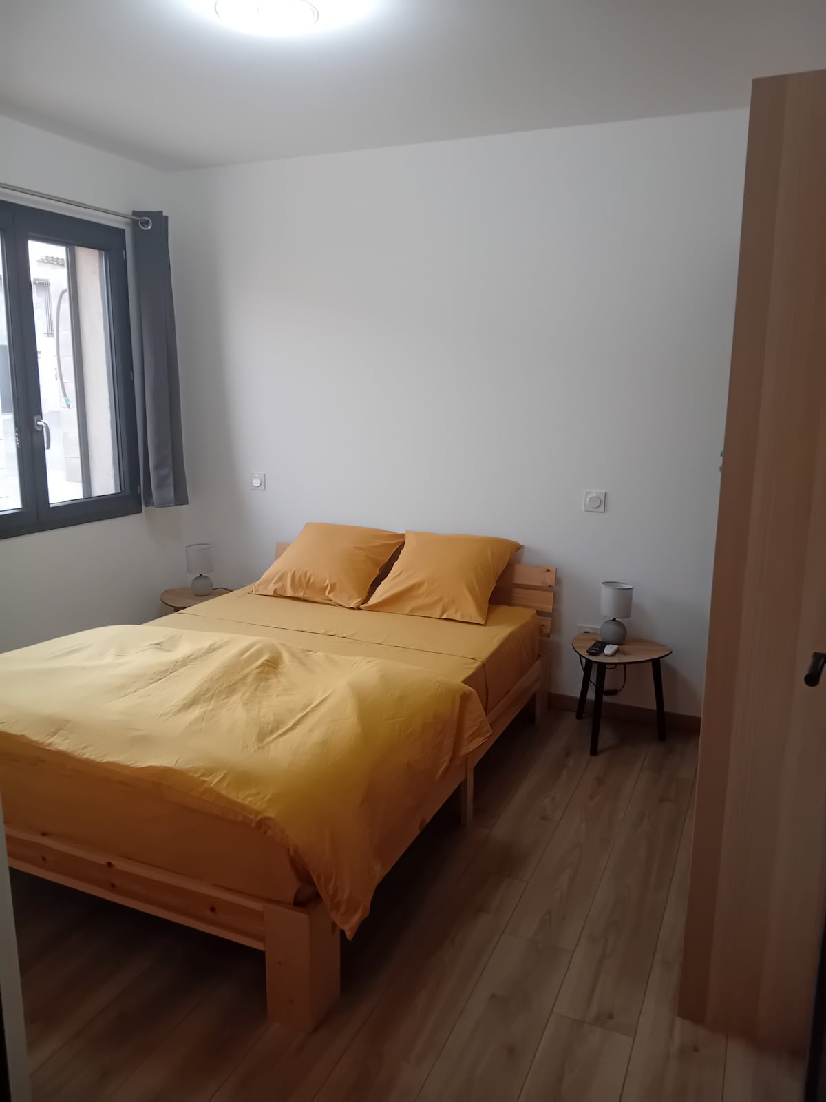 Mini estudio con todo de uno grande:-) Entrada independiente de una gran villa, pequeño estudio en superficie pero muy funcional con bz muy cómodo, armario, cocina equipada real, mesa y silla plegable para comer en el interior o en el exterior, baño independiente con ducha, lavabo y cocina, e incluso una falsa chimenea animada lol Estacionamiento y wifi gratuitos