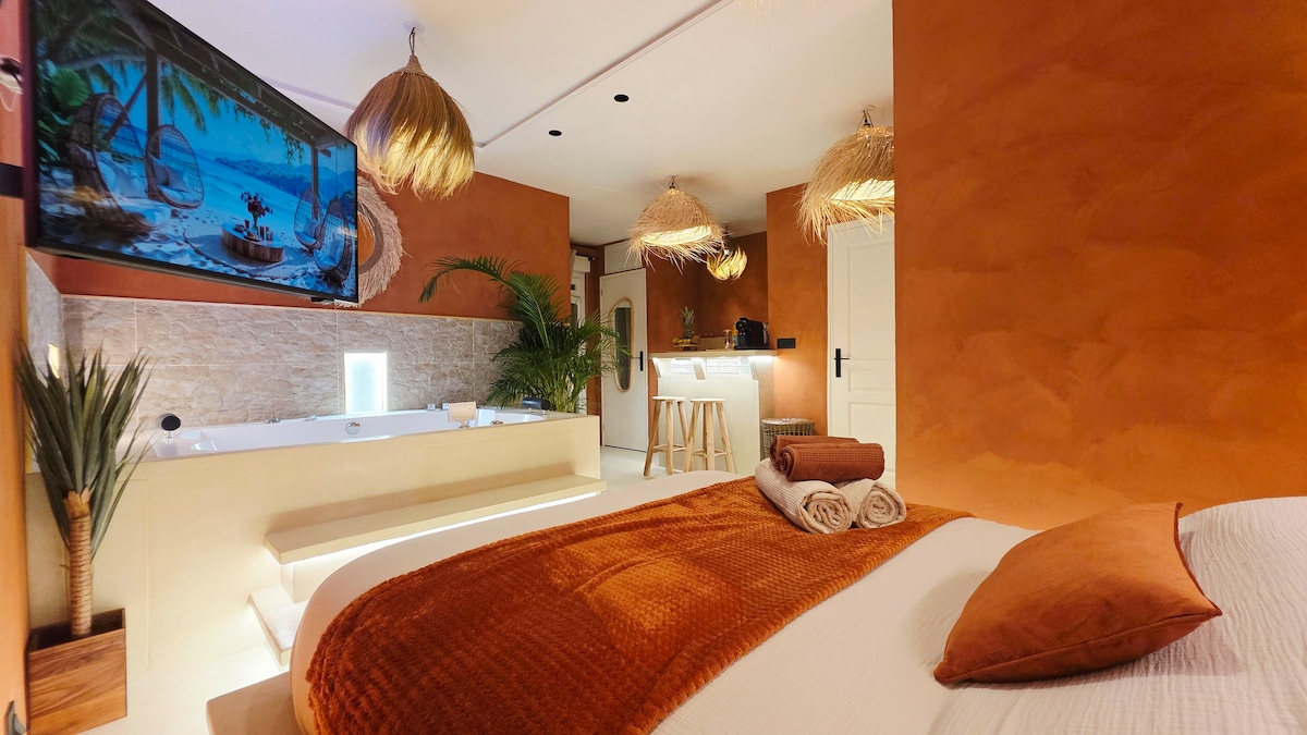 La Maison du Bonheur se encuentra a 25 km de Forges les Eaux y su Casino, a 20 minutos de Beauvais y su aeropuerto, a 15 minutos de Gerberoy, clasificado entre los pueblos más bellos de Francia, pero también a 1 hora de París. Esta casa totalmente amueblada en un loft romántico está destinada a proporcionarle un momento de descanso y relajación. Su decoración envolvente y su espacio Balnéo le permitirán recargar las pilas en pareja y dar rienda suelta a sus deseos. Venga a desconectar...