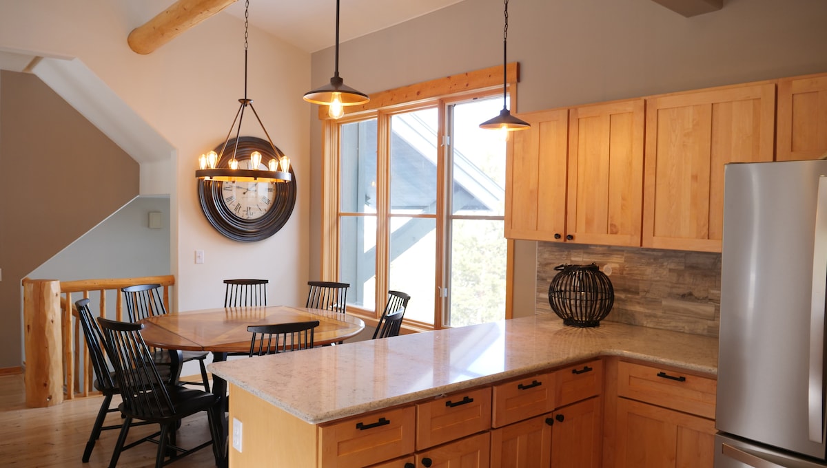 Increíbles vistas de los principales picos de la cumbre desde el segundo piso. ¡Apartamento soleado y luminoso con ventanas por todas partes para disfrutar tanto del atardecer como del amanecer! Amplio de 850 pies cuadrados con garaje privado. Mobiliario cómodo (mesa de comedor grande, sofá y sillón reclinable de cuero nuevo, TV inteligente) y cocina totalmente equipada que te hará sentir como en casa. Disfruta de los senderos que hay justo fuera de tu puerta. Dos baños completos (uno con ducha de vapor y otro con bañera de hidromasaje), cama tamaño king y techos altos. Excelente ubicación cerca de todo.