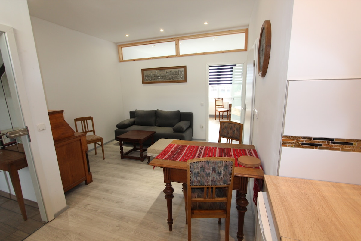 Sala de estar El apartamento tiene un tamaño de aprox. 40 m2. Hay un dormitorio (cama de 1,40 cm). El armario está disponible. En la sala de estar, hay una cocina pequeña con refrigerador y un sofá, además de una mesa con sillas. Una ducha con inodoro completa el apartamento. Agradecemos su interés y estaremos encantados de responder a cualquier pregunta que pueda tener.