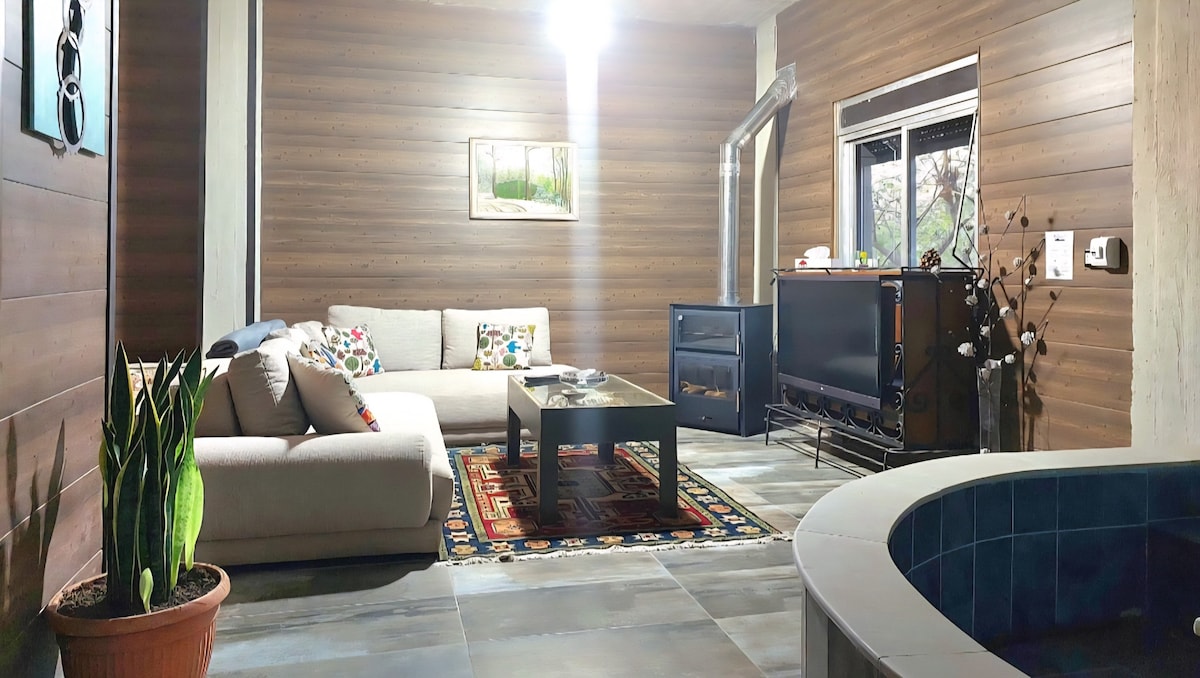 Charming private guesthouse in Aarbaniye, Lebanon, perfect for a serene getaway. Sleeps 3-4 guests: 1 double bed and 1 sofa bed Private outdoor area with a relaxing hot tub Just 40 km from vibrant Beirut, about a 45-minute drive Close to local attractions, blending tranquility with adventure Modern comforts in a cozy, authentic setting