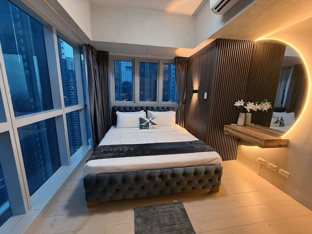 Escápate a una suite de piso alto con impresionantes vistas al horizonte de BGC, sonido envolvente cinematográfico JBL y un televisor inteligente 4K completo de 55 pulgadas con iluminación ambiental LED: tu mejor refugio nocturno de cine. Disfruta del paisaje con binoculares de alta calidad y luego sumérgete en la cama Cloud-Bed Emma® para una noche de sueño perfecto. Lejos del ruido de la ciudad, pero cerca de todo, ¡disfruta de WiFi rápido, Netflix, Disney+ y más! ¡Verdaderamente un espacio totalmente equipado para una experiencia de escapada perfecta e inolvidable con Cinema 27!