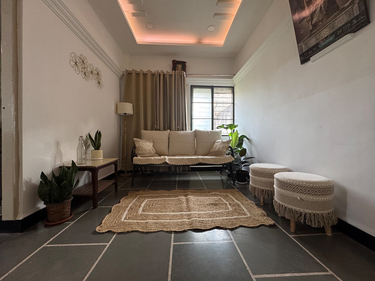 अतिथि देवो भव is at the heart of everything we do Nestled in a quiet lane and surrounded by greenery, this home offers a peaceful retreat with a blend of comfort and tranquility, where your mornings begin with the gentle chirping of birds and a freshly served breakfast, which is included in your stay Daily housekeeping and dishwashing are handled by us, including multi-day stays, ensuring a comfortable and hassle-free experience Home-style Kolhapuri meals are available at an additional cost