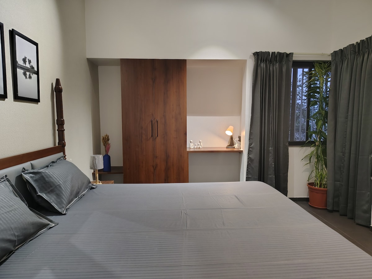 Te damos la bienvenida a nuestra acogedora y moderna casa 2BHK, perfecta para familias o grupos de amigos que buscan una estancia cómoda y relajante. Esta espaciosa casa cuenta con dos cómodas habitaciones con colchón tamaño queen, sala de estar y una cocina funcional, por lo que es ideal para unas vacaciones inolvidables. Nuestra casa está equipada con todos los servicios que necesitas para disfrutar de una estancia cómoda, como wifi, TV con Jio y OTT, respaldo de energía de 16 horas, enfriador de aire, caja de plancha, lavadora, secador de pelo, etc.