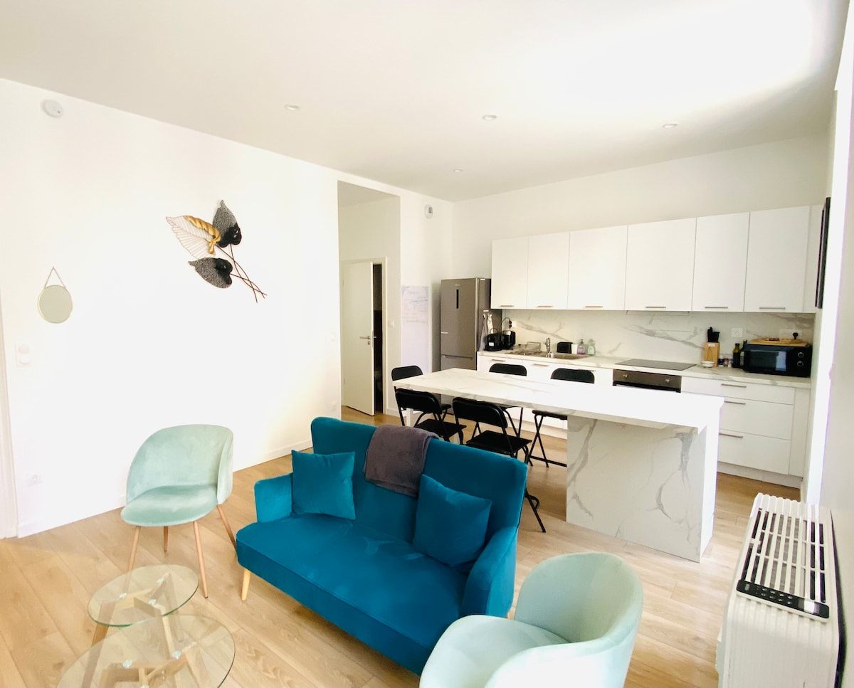 Disfruta de un alojamiento elegante y céntrico situado en el corazón de la ciudad del León. Renovado con paciencia, cuenta con todas las comodidades modernas para una estancia óptima. Situado en el primer piso de un edificio de 1900, el alojamiento es tranquilo y luminoso. Equipamiento XXL. Anfitriones profesionales, atentos y receptivos. Caja de llaves. Aparcamiento, restaurantes y tiendas cerca.