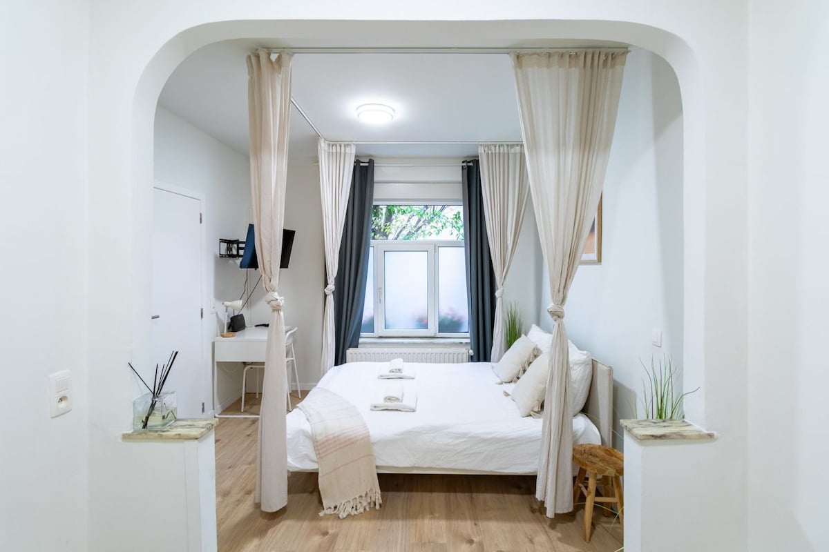 ¡Te damos la bienvenida a B en Amberes! - Amplia mini suite con sala de estar separada y baño de lujo. - Interiores diseñados con estilo en un edificio histórico en la calle Amerikalei. - Situado en el moderno sur de Amberes, cerca del centro de la ciudad y de los principales museos. - Café y refrigerios de cortesía en el acogedor salón. - Wi-Fi de banda ancha gratuito disponible en todas las habitaciones. - Fácil acceso a atracciones locales como la Catedral de Nuestra Señora y el zoológico de Amberes.