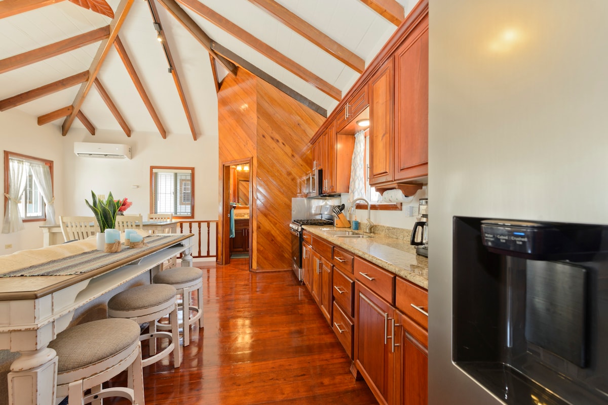 BTB Gold Standard Certified. Laura's Lookout is an upgraded traditional Belizean 3 bedroom and 2 bath home. Located in downtown Placencia Village a block off the road you get a quiet look of the village from the large veranda. The yard is gated with 2 local businesses downstairs. You are a minute from the main municipal pier, the beach, swimming, numerous restaurants, a coffee house, a Gelateria and much more. A true experience of Placencia. Ideal for families and large groups.