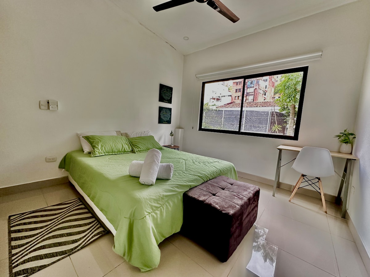 Este maravilloso lugar ha sido remodelado y amoblado con productos nuevos de excelente calidad, este apto en primer piso de 2 habitaciones y 2 baños privados te ofrece amplios espacios en la sala y comedor dónde puedes compartir con tu familia o amigos, Wi-Fi de alta velocidad con escritorio ideal para trabajar, cortinas oscuras, colchones y sofás confortables, cocina full equipada, dos patios privados al aire libre y parqueadero privado dentro del edificio.