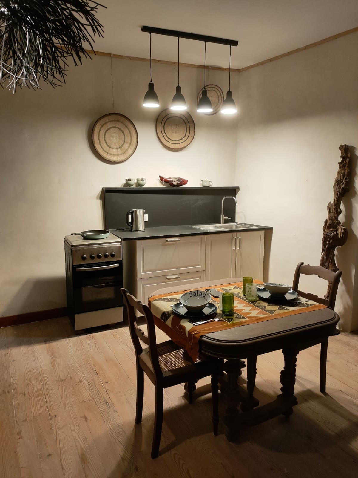 De nada en nuestra granja. La granja se encuentra en una zona tranquila y rural. La propiedad tiene capacidad para 9 personas y tiene 4 dormitorios, una amplia sala de estar y una acogedora cocina comedor. En el exterior hay una terraza cubierta con barbacoa, una cocina al aire libre totalmente equipada y un hermoso jardín con un parque infantil, una piscina privada y una bañera de hidromasaje.