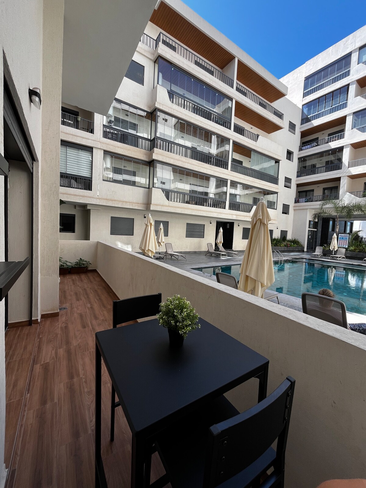 Importante: por cada reserva le ofrezco el desayuno en @poundsfitkitchen el mejor restaurante de la ciudad. Muy bonito apartamento nuevo en una hermosa residencia tranquila el apartamento está solo en el piso de arriba con vistas a la piscina . Ideal para viajeros y familias que deseen disfrutar de las hermosas playas de mohamadia. Encontrarán la felicidad con el acceso a las piscinas y a las diferentes zonas de juegos para niños, así como a las pistas de tenis y fútbol. El acceso a la playa está a 5 minutos a pie