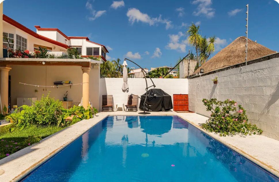 Hermosa casa bien decorada en un barrio tranquilo. A 5 minutos del mercado, a 10 minutos del centro de la ciudad y a 15 minutos del aeropuerto y de la playa en la Zona Hotelera. Cuenta con piscina y un bungaló para comer fuera. También puedes disfrutar cuando estás en temporada (mayo-julio) de árboles de mango, coco y plátano.