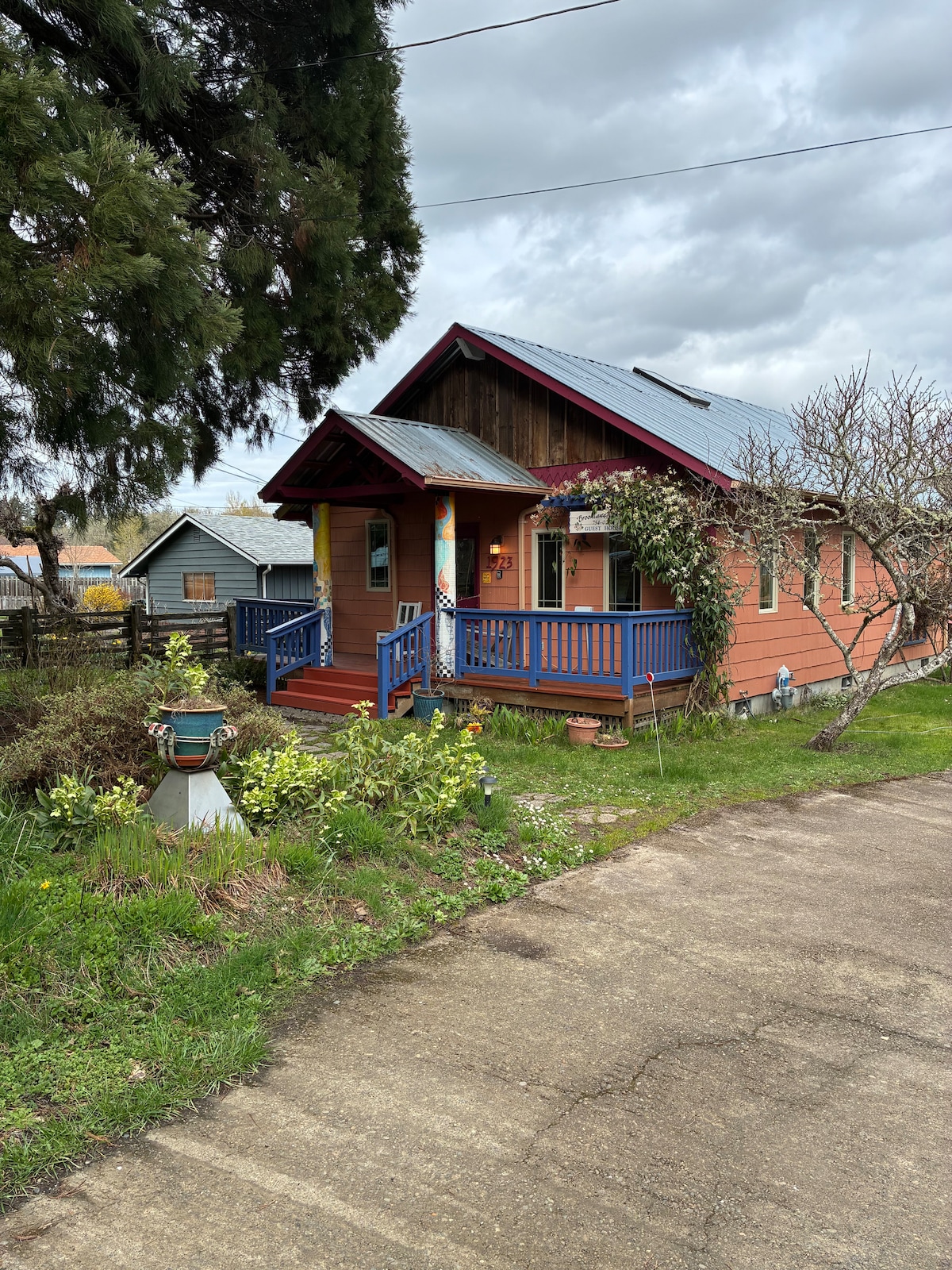 Ubicado en un barrio semirural, a menos de 1 milla del campus de OSU. Único en todos los sentidos y tocado por la mano del artista en todas partes. Planta abierta, cocina totalmente equipada, baño (incluye lavadora/secadora) y dormitorio (cama tamaño queen) con cama de ventana tamaño infantil y sofá cama muy cómodo en la sala de estar. Café/té, comodidad y relajación, ¡ven a disfrutar de lo mejor de Corvallis! Dirigido, administrado y limpiado por el propietario: la mejor manera de garantizar que tengas una experiencia de 5 estrellas alojándote aquí. 😊