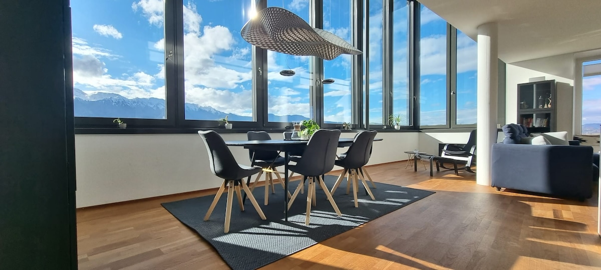 ¿Anhelas la naturaleza, la tranquilidad🌲, las vistas de los Alpes⛰️, la bañera de hidromasaje 🛁 y el sol ☀️ sobre el borde de la niebla en un lugar exclusivo? ¿Quieres explorar Suiza 🇨🇭 desde una ubicación céntrica? ¿Estás buscando un gran departamento (de vacaciones)🏡, con un espacio de trabajo totalmente equipado para trabajar desde casa💻? ¡Entonces te quedaste con nosotros! Disfruta de las hermosas vistas🌅, visita un gran restaurante de montaña con nosotros o haz senderismo❄️, excursiones en bicicleta, raquetas de nieve🚴, etc.