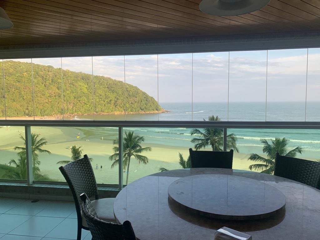 Apartamento de 263 m2 frente al mar, con fantásticas vistas a toda la playa de São Lourenço y la Riviera. Gran balcón cerrado con cristales que rodea todo el apartamento. Con 4 dormitorios, 2 de ellos suites, todos con armarios empotrados. Aire acondicionado en todas las habitaciones. Televisión y acceso a internet de 120 mega. Excelente comedor y cocina combinados con mesa para más de 10 personas. Barbacoa y mesa en el balcón. Condominio con gran conjunto de piscinas, gimnasio y sauna. 3 lugares de estacionamiento.