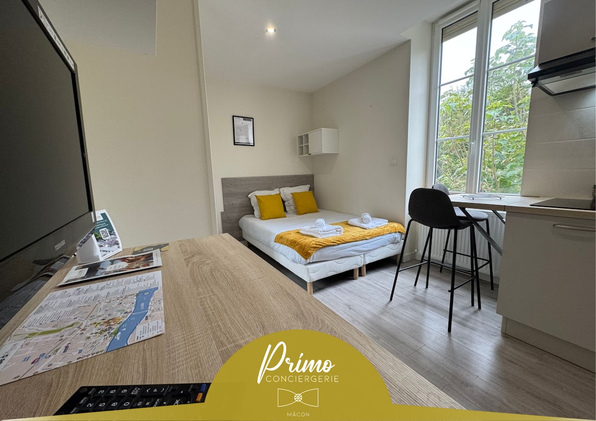 Venez profiter d'un instant de quiétude dans cette ancienne ferme vigneronne et agricole entièrement rénovée au cœur du Mâconnais situé à 5 mn de la sortie du péage A6 Mâcon Nord. Vous bénéficierez d’une superficie de 40m2 tout confort. Climatisation, cuisine toute équipée, chambre avec lit 140 électrique à mémoire de forme, salle d'eau avec sa douche italienne, TV , terrasse privative, parking sécurisé et fermé, canapé convertible 2 places...