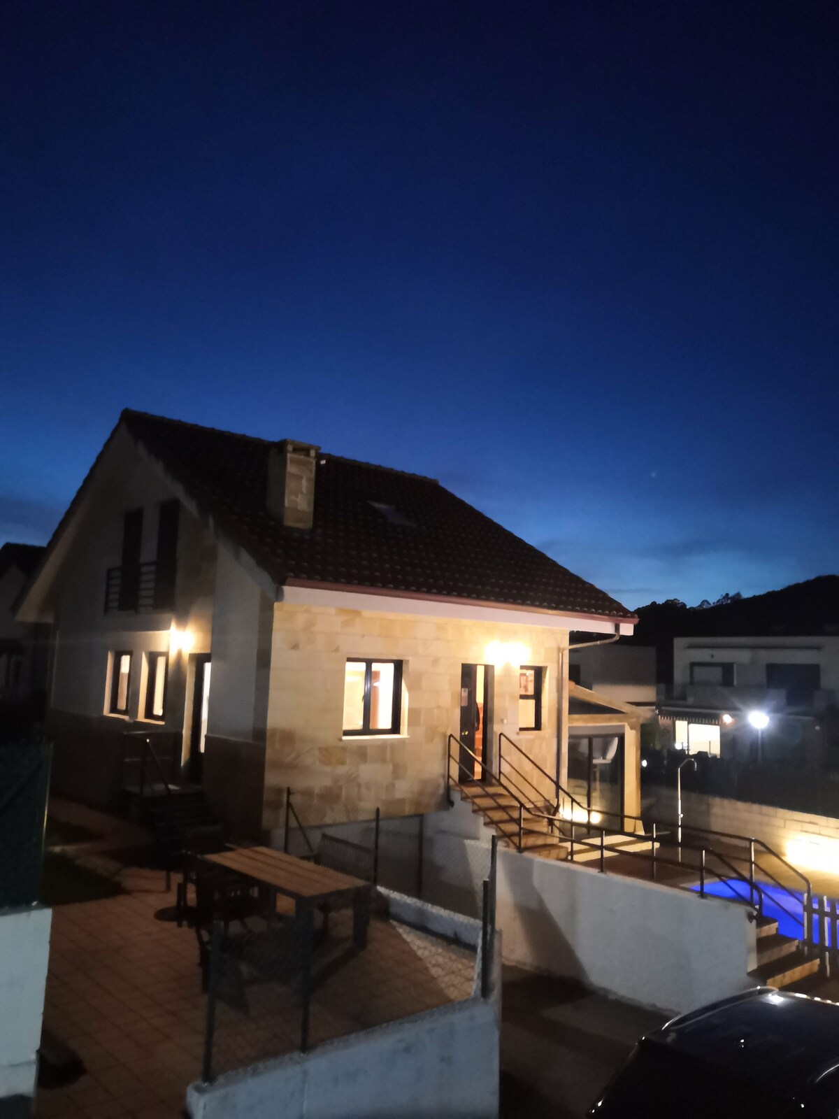Casa con encanto situada en un entorno de gran belleza y tranquilidad. Uno de los puntos fuertes de la casa es su jardín con su piscina privada. También el interior de la casa es cómodo lo que os ayudará a disfrutar de vuestra estancia. Está especialmente pensada para familias, ya que los propietarios tenemos 3 hijos y la vivienda está diseñada para el dísfrute familiar. Por ello, la casa dispone de una cama elástica, badminton, futbolín, portería, canasta, etc...