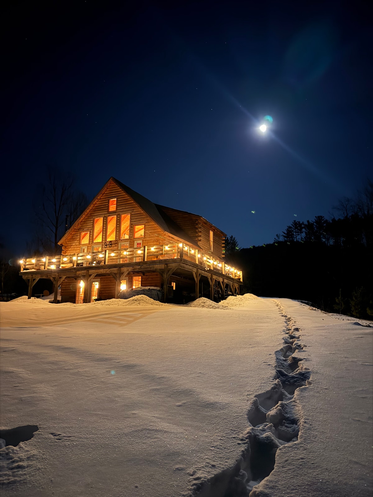 Entra en un paraíso invernal en las Montañas Blancas. Las rutas de senderismo de invierno están justo al otro lado de la calle, con una tranquila ruta fluvial cerca, perfecta para paseos nevados o esquí de fondo. Visita el icónico puente cubierto de Jackson y las cascadas congeladas, o disfruta de Story Land, North Conway, esquí, raquetas de nieve y más a pocos minutos de distancia. Después de un día de aventura, relájate junto a la chimenea o en la terraza y contempla las vistas nocturnas de los preparadores de pistas que escalan Attitash. ¡Ubicación perfecta para todo lo relacionado con el invierno!