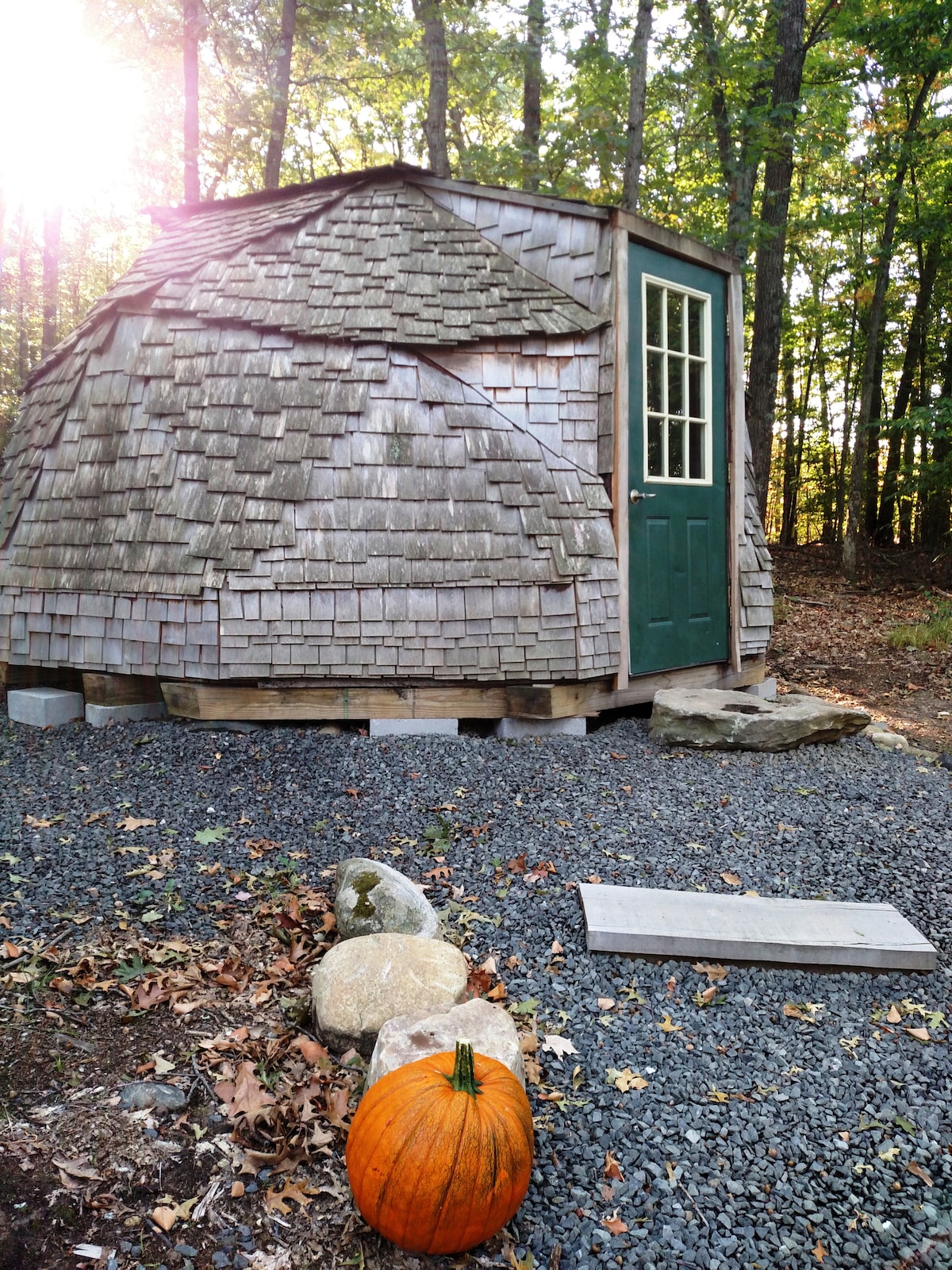 Un gran espacio con luz natural ubicado en el borde del bosque. Estar cerca de la naturaleza pero también cerca de nuestra casa para convencimientos modernos en nuestra casa. Ten en cuenta que este espacio no está conectado, no tiene electricidad, calefacción ni aire acondicionado. Hay un baño completo para tu uso en nuestro sótano, a 125 pies de distancia. Además, estás en el bosque y las arañas pueden entrar en la cúpula. También tenemos nuestra pequeña casa para que te quedes si el clima es demasiado frío. La minicasa tiene energía y algo de calefacción. Ver las últimas 3 imágenes.