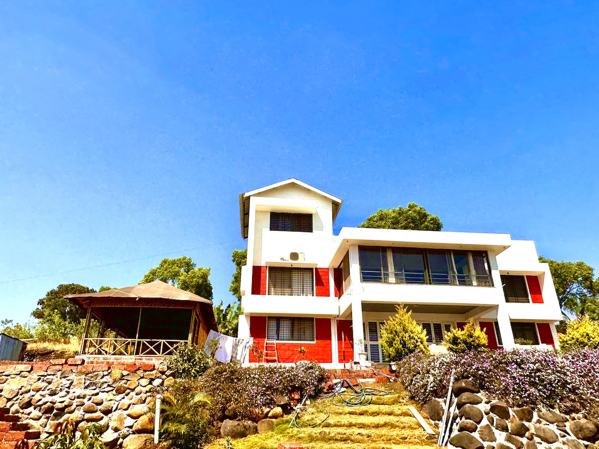 Nuestra villa de 3 BHK con piscina infinita con área de 2 acres está situada en el borde del histórico templo Jyotiba de Kolhapur. Ofrecemos 3 bungalows BHK para 8-15 personas y grandes espacios para comer, TV, sistema de karaoke, relajación. Los baños y la cocina tienen comodidades modernas (la cocina solo la usa el cuidador). Servicios: piscina infinita, aire acondicionado, agua caliente, TV, sistema de karaoke, wifi, jardín, área de juegos para niños Lugares cercanos: Fuerte de Panhala, templo Jyotiba, templo Mahalakshmi, lago Rankala