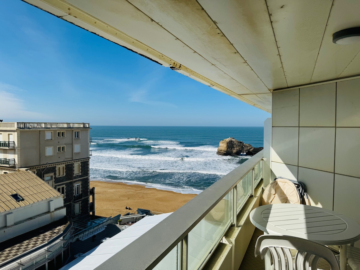 Estudio excepcional con balcón privado y impresionantes vistas al mar. Idealmente situado en el corazón de Biarritz frente a la Gran Playa, en el sexto piso de un complejo residencial de lujo y seguro con ascensor y conserje, este apartamento renovado ofrece una ubicación de ensueño para disfrutar del mar o relajarse después de un día explorando Biarritz. Muy bien equipado, dispondrá de todas las comodidades necesarias para pasar unas hermosas vacaciones en la costa vasca.