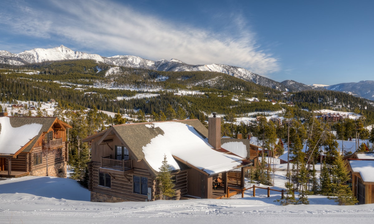 ¡Te damos la bienvenida al paraíso de montaña de nuestra familia! La MEJOR ubicación en Big Sky... ¡Vistas espectaculares, total privacidad y aislamiento y perfectamente encaramado en la montaña a 4 minutos del centro de la ciudad y a 5 minutos de las pistas! Impresionantes rutas de senderismo y esquí de fondo justo afuera. Hermoso interior con todo de primera calidad... muebles, electrodomésticos, televisores de pantalla grande, jacuzzi y esas VISTAS. ¡Dos preciosas suites con dormitorio principal! ¡Mejor imposible!