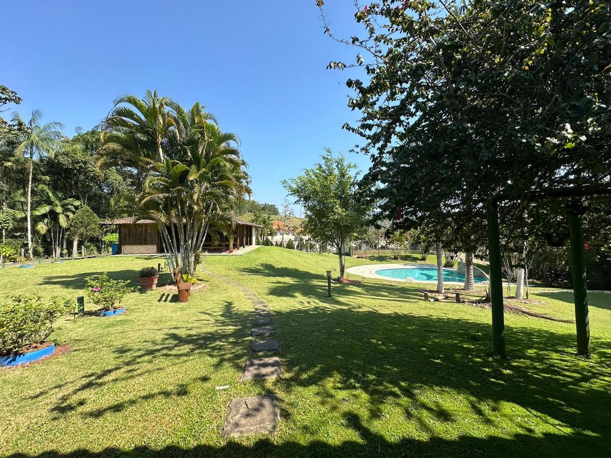 El sitio está ubicado en Grande Florianópolis/SC, en la zona rural de Biguaçu, en Três Riachos. Casa con aire acondicionado y balcón. Sala de estar y cocina combinadas con doble techo, chimenea, parrilla y estufa de leña, 4 dormitorios, 1 de ellos en suite. Lavandería, garaje cubierto para 2 coches y zona de juegos con billar, futbolín y hockey. Parque infantil, pista polideportiva iluminada, piscina, 3 puestos para caballos, torre mirador al paisaje, arroyo natural, lago con carpas y árboles frutales.