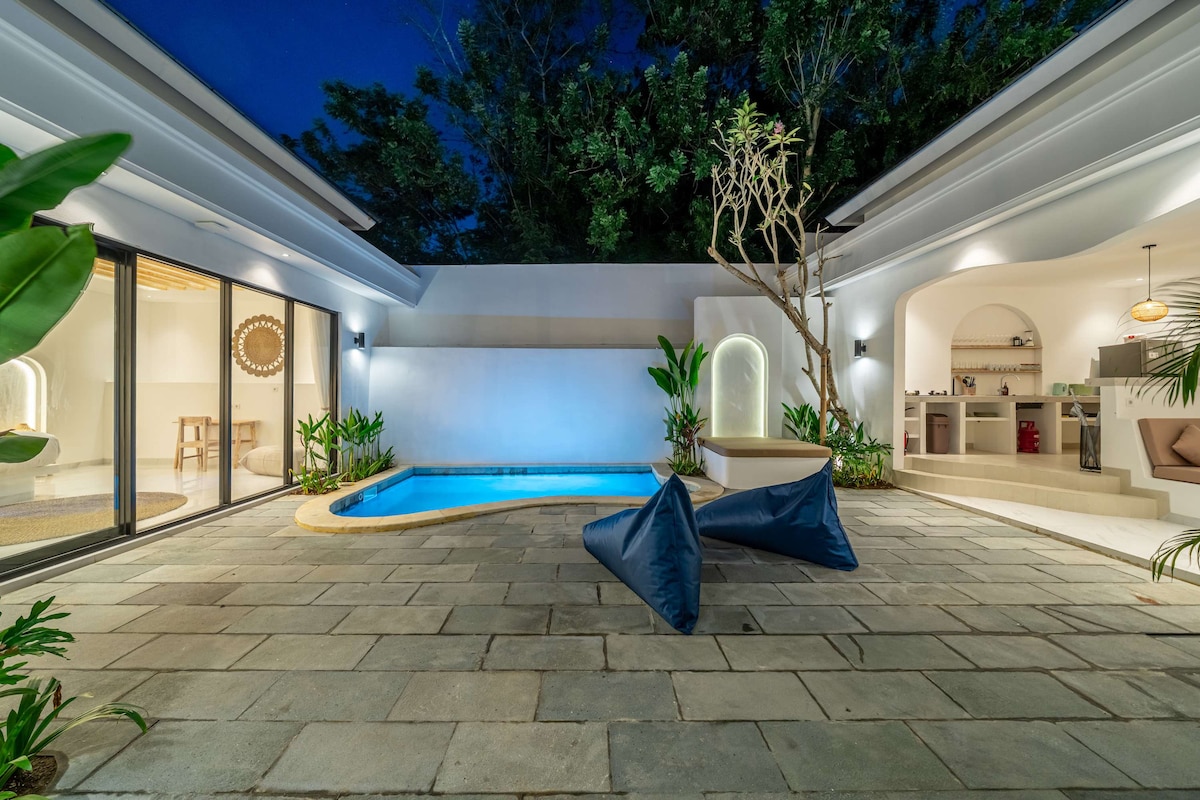 Escápate a tu santuario tropical privado, diseñado pensando en el romance y la relajación. Ubicada en una zona tranquila de Bali, esta elegante villa de un dormitorio combina curvas de inspiración mediterránea con una elegancia moderna, perfecta para parejas y recién casados que buscan una escapada de ensueño. Tanto si te despiertas con la suave luz del sol a través de las cortinas, cenas al aire libre bajo las estrellas o disfrutas de un relajante baño en tu ducha de diseño, cada detalle ha sido seleccionado para ofrecer comodidad, estilo y conexión.