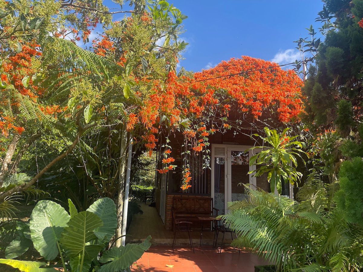 Te invitamos a nuestro Junction EcoLodge. Nuestra cabaña tiene una ubicación PRIVILEGIADA, a poca distancia de la selva de Cat Tien (700 m). Está recién construido, bien diseñado y amueblado para satisfacer a los clientes respetuosos con el medio ambiente. Situado cerca de la confluencia de los ríos Dong Nai y Da Huoai, nuestro albergue ofrece vistas excepcionales a los ríos y a las colinas cercanas. Desde nuestra cabaña, pudimos escuchar los sonidos de la caída de agua cercana en el río Dong Nai durante la noche y la noche.