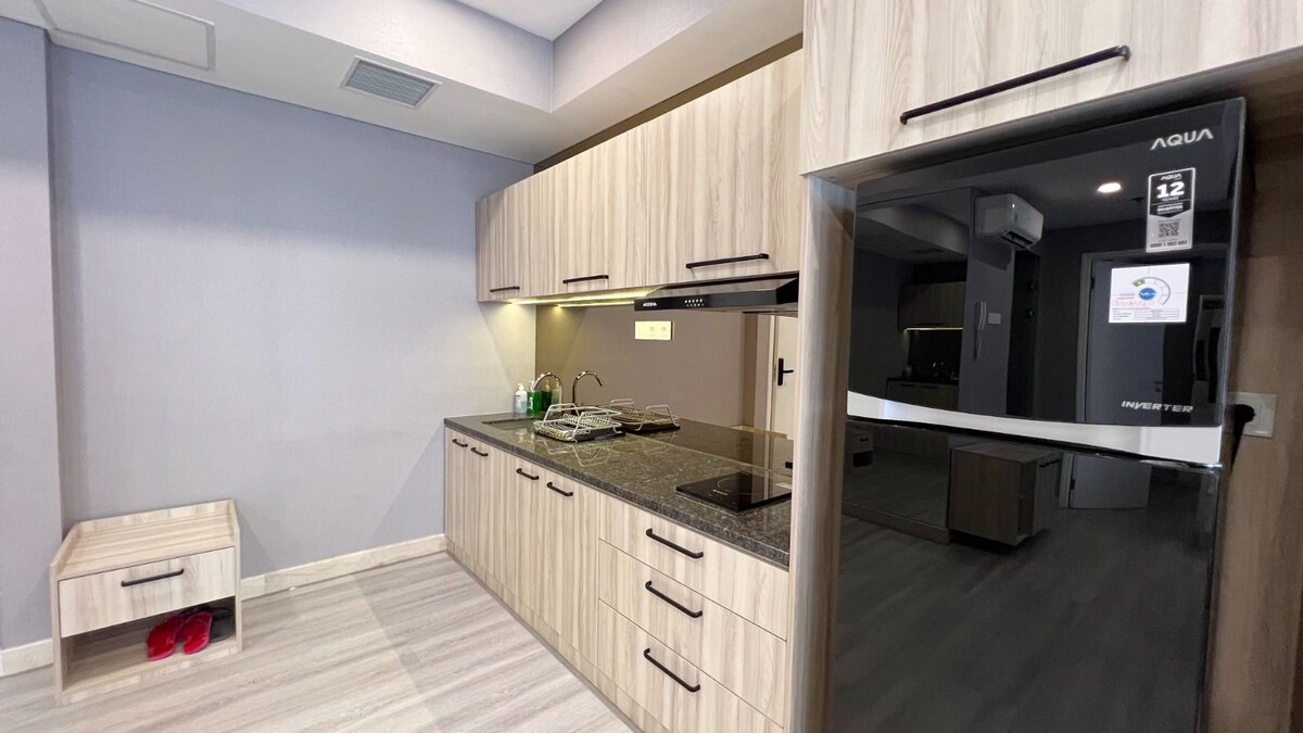 Apartamento Premium Podomoro en Empire Tower. Disfruta de un apartamento diseñado en estilo contemporáneo Muji: acogedor, minimalista y limpio. Ofrece un ambiente tranquilo y cálido para pasar tiempo de calidad con tu familia ❤ El interior combina funcionalidad y estética para garantizar una estancia verdaderamente cómoda. Ubicado estratégicamente en el corazón de Medan, usted y su familia estarán cerca de tiendas, restaurantes y áreas de negocios. Ideal para una movilidad eficiente. Acceso directo a las instalaciones y al centro comercial Deli Park.