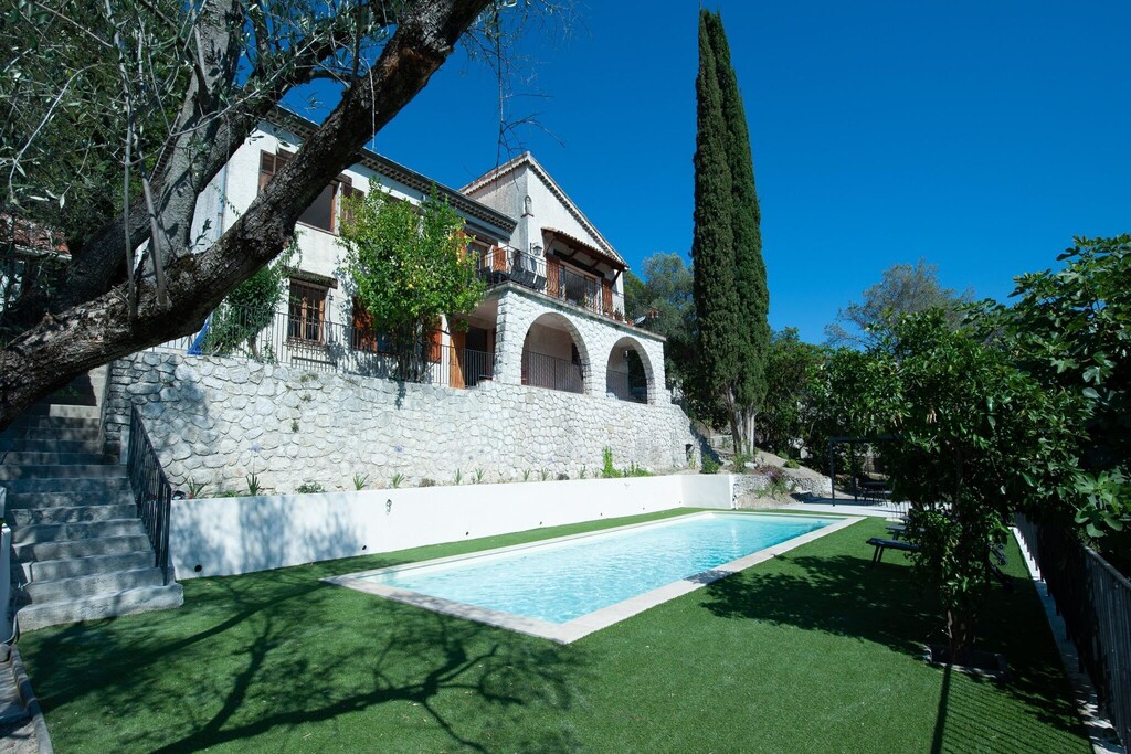 2025 noticias de que nuestra casa está registrada oficialmente como una casa de 4 estrellas. Relájate en este alojamiento único y tranquilo con vistas panorámicas al mar y las montañas. Esta villa está ubicada en las alturas de Antibes en una tranquila zona residencial rodeada de una parcela de 5800 m2. todas las tiendas están a 3 minutos en coche y el centro de la ciudad y las playas están a 7 minutos.