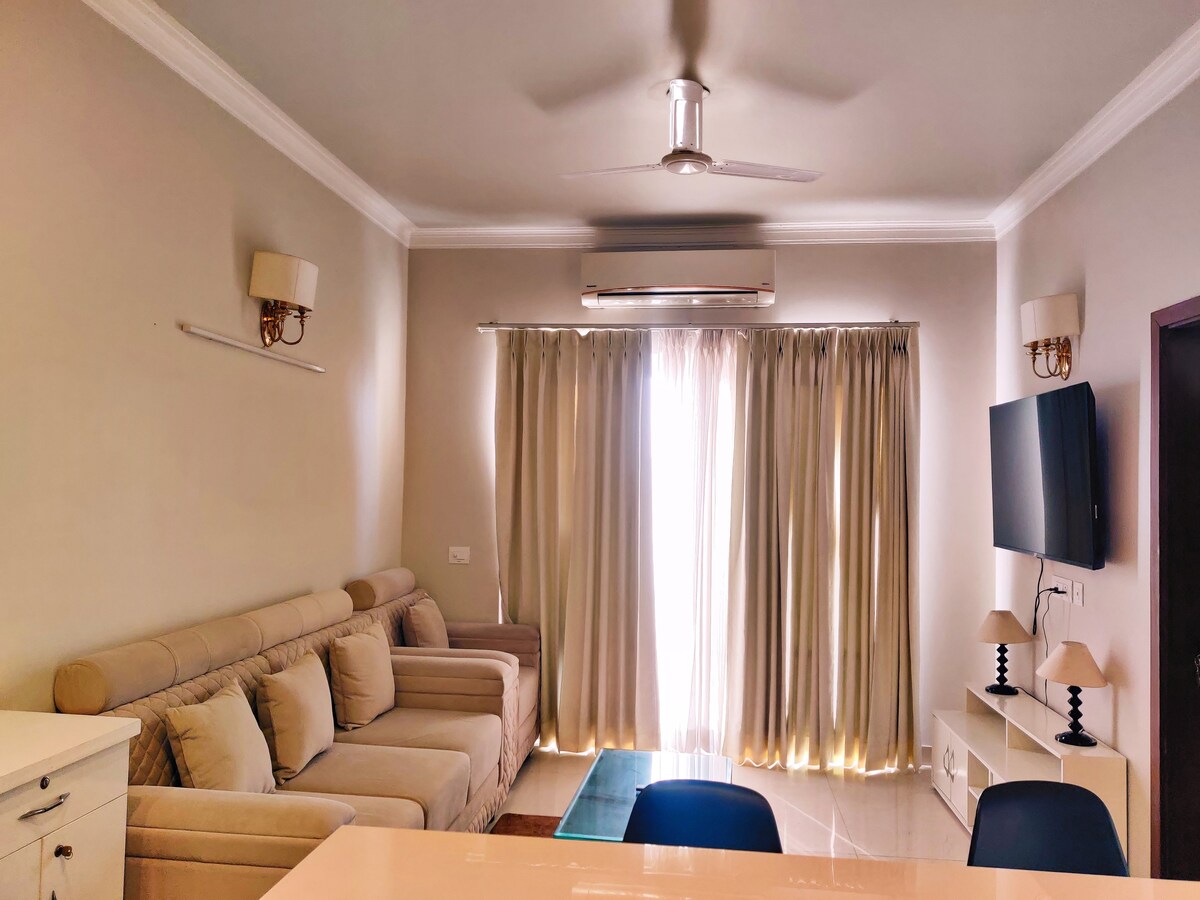 Relax at this peaceful & chic place to stay. Free hi speed WiFi. Free access to Gym swimming pool & kids water park Outdoor Kids play area . Access to tennis courts, Basketball courts & Badminton courts. 24*7 security with cameras installed in common areas. Restaurants within the premises with live music and BYOB facility. Ur cafe & cafe flora within the society.