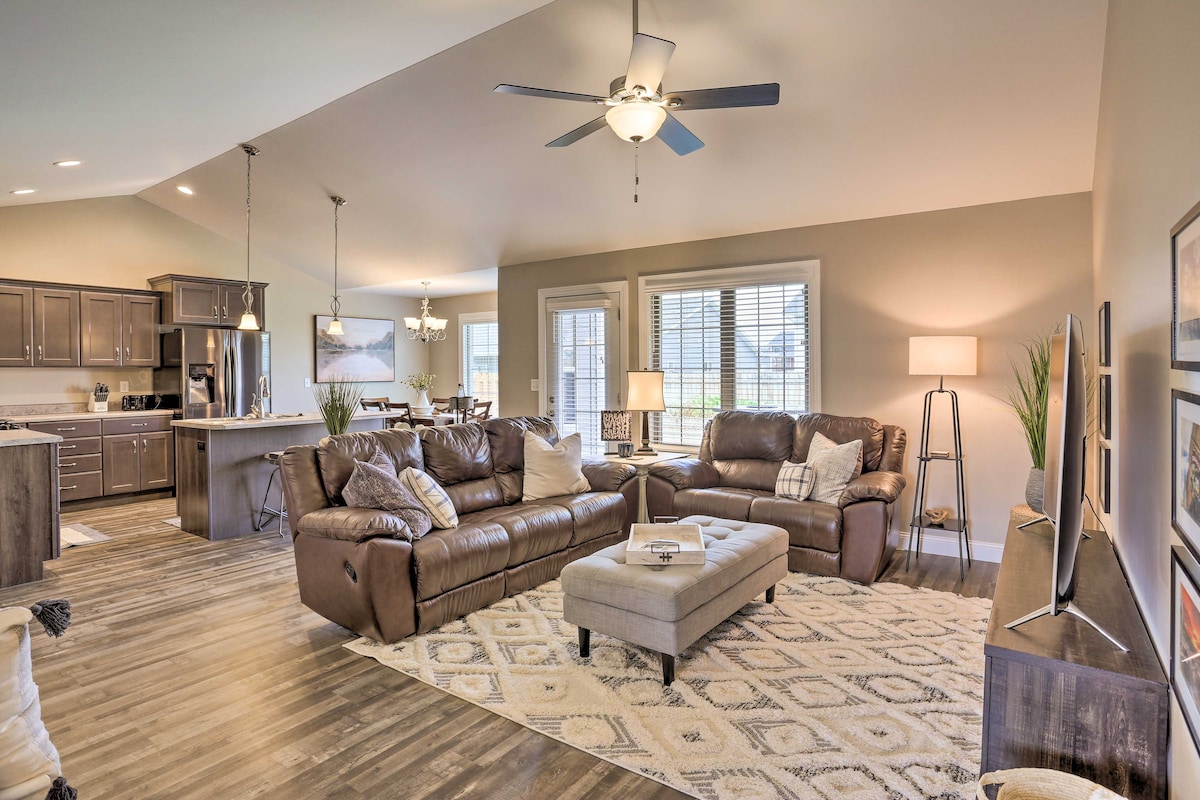 Descubre la belleza de las Colinas Negras desde esta casa de nueva construcción de 5 dormitorios y 3 baños y un aseo en el centro de Spearfish. Este alquiler vacacional de estilo rústico moderno invita a familias numerosas o grupos a disfrutar con comodidad y facilidad entre exploraciones. Haz una caminata o conduce por Spearfish Canyon, haz una excursión de un día a Mount Rushmore y camina hasta restaurantes, cafeterías y bares en Main Street. Luego, retírate a este acogedor y elegante espacio con televisores inteligentes, chimeneas, juegos, un amplio porche, una parrilla y mucho más.