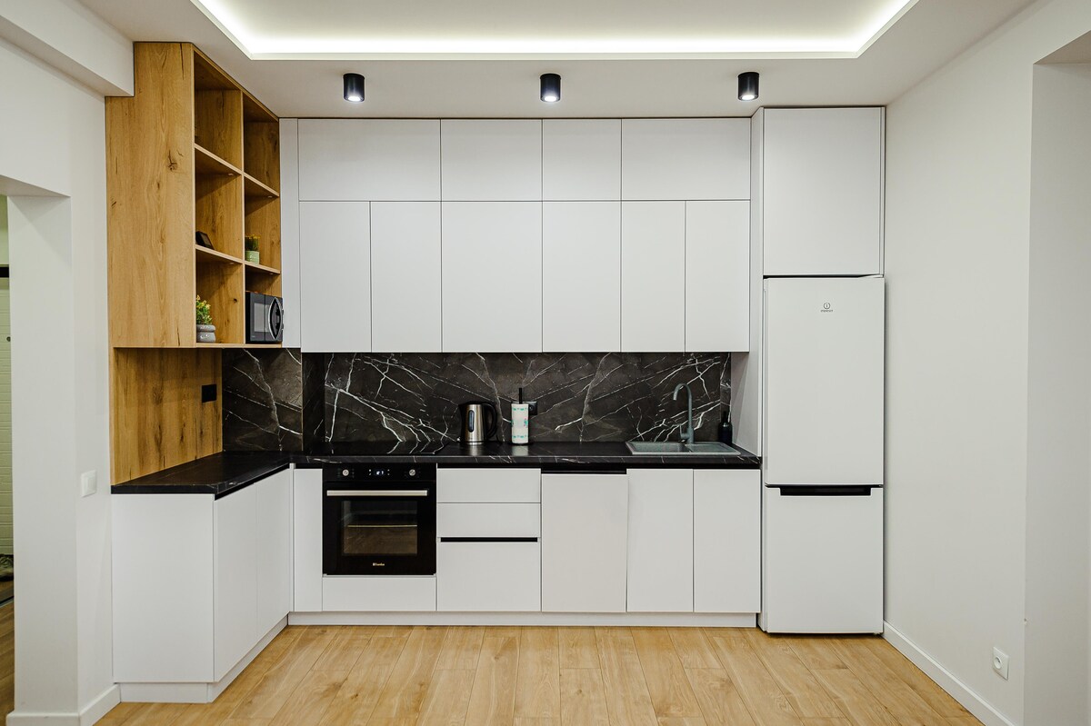 Nueva, espaciosa, acogedora, la mejor ubicación en Batumi, a 100 metros de la playa, dormitorios con vistas a la montaña, sala de estar con vistas al mar. También se pueden ver fuentes musicales láser desde la sala de estar todas las noches. Cerca del apartamento se encuentra McDonald 's, a 300 metros del delfinario, a 300 metros del parque central de Batumi, a 50 metros del supermercado (24 horas). Muchos restaurantes con diferentes cocinas alrededor.