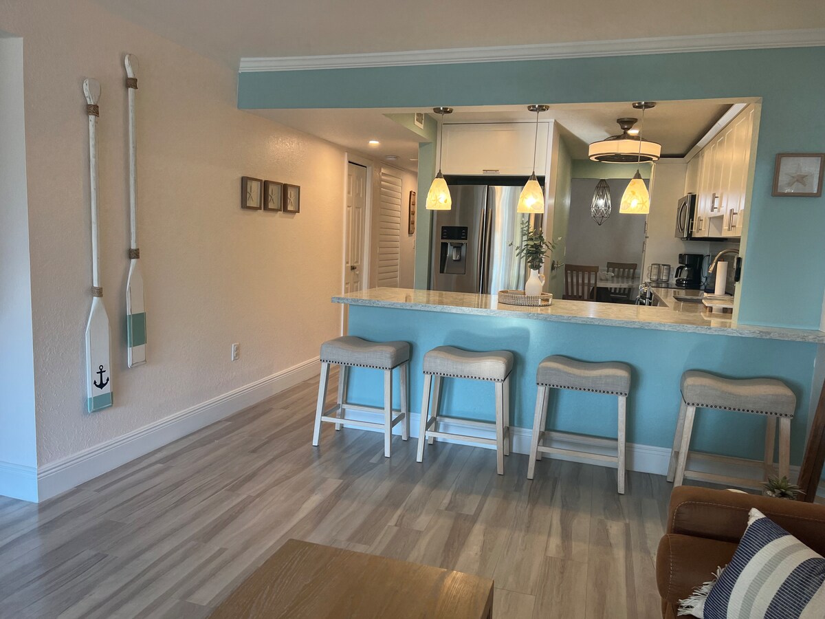 Disfruta de hermosas puestas de sol y excelentes vistas de la bahía Manatee desde este apartamento tipo estudio bellamente remodelado. El lugar perfecto para parejas y familias pequeñas, este moderno estudio cuenta con kayaks y tablas de remo para que puedas salir al agua como un lugareño. La ubicación ideal ofrece fácil acceso a la bahía, excelentes restaurantes y playas locales. A 10 minutos en coche del centro vacacional Gilbert's. A 15 minutos en coche del Parque Estatal del Arrecife de Coral John Pennekamp. ¡Disfruta de Cayo Largo con nosotros y obtén más información a continuación!