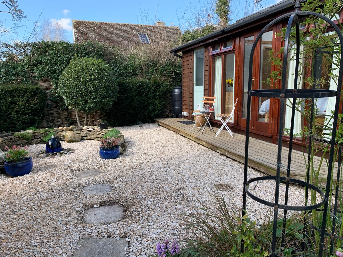 Stunning hideaway in a fabulous location with views looking down over Blenheim Palace Estate and a beautiful Cotswold valley. So Peaceful. Large sun deck, your own garden and wild flower meadow Our Chickens lay breakfast eggs Stylish and comfortable interior. Under floor heating Beautiful Super king size bed with Egyptian cotton linen Fabulous Village Pub just 10 minutes walk. Excellent location for exploring the Cotswolds Please do read guest reviews and read on for more details