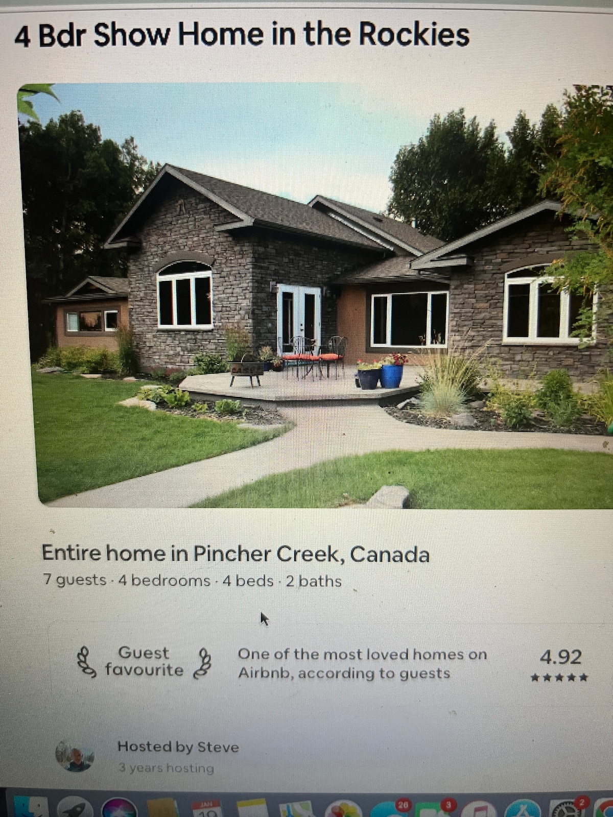 Business License #0000742 Located 25 minutes from Castle Mountain Ski Resort and 30 minutes from hiking in Waterton National Park this amazing accommodation in the heart of Pincher Creek has exactly what you are looking for. Located on a quiet cul de sac next to a green space and park This spacious, boho inspired upper level home is perfect for families to get away and enjoy the mountains. The large open concept living, dining and kitchen area is a great space to kick back and relax!