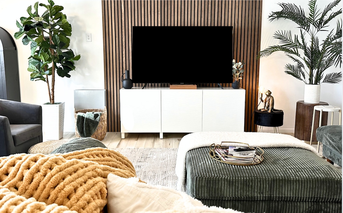Diviértete con toda la familia en este elegante alojamiento de concepto abierto. Casa de 3 dormitorios y 1300 pies cuadrados con 1 CAMA TIPO KING, 1 queen y 1 completa. Televisores en TODOS los dormitorios. ¡Disfruta del acceso a la lavandería, wifi de alta velocidad y un patio trasero totalmente vallado! Situado en una de las mejores ubicaciones cerca del estadio, campos de golf, tiendas, excelentes senderos/parques y mucho más. Se admiten perros (NO GATOS). Ofrecemos llegada/salida anticipada/tardía por 20 dólares. Añade mis anuncios a tu lista de favoritos haciendo clic en el icono ❤️ en la esquina superior derecha.