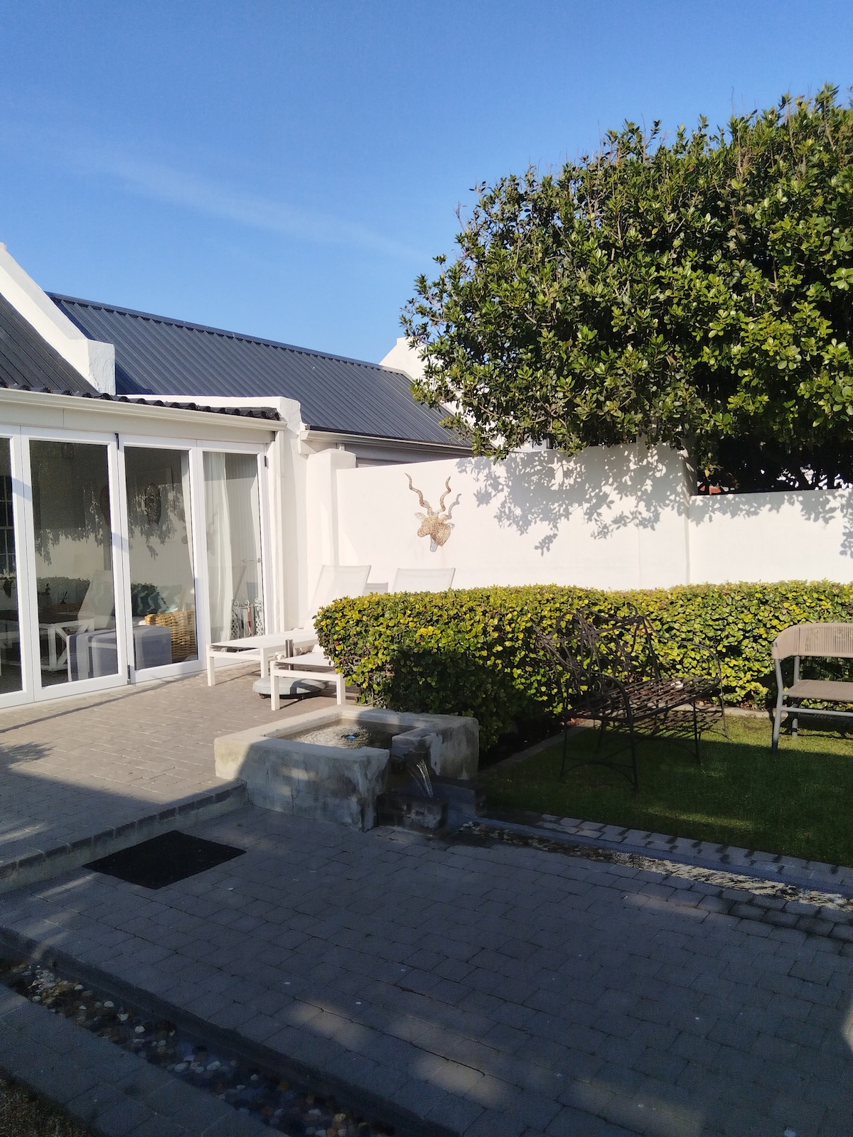 Tastefully decorated modern 1 bedroomed suite with luxurious finishes and private garden with gated parking. Close to Blouberg Beach, shopping malls, bars, restaurants and a hospital. Ideal for holiday makers, surfers or business travellers. Lounge with 55" smart tv, uncapped wifi Comfortable double bed with luxurious linen Fully equipped kitchen with washing machine Full bathroom Dedicated workstation Private garden with braai Secure gated entrance with alarm